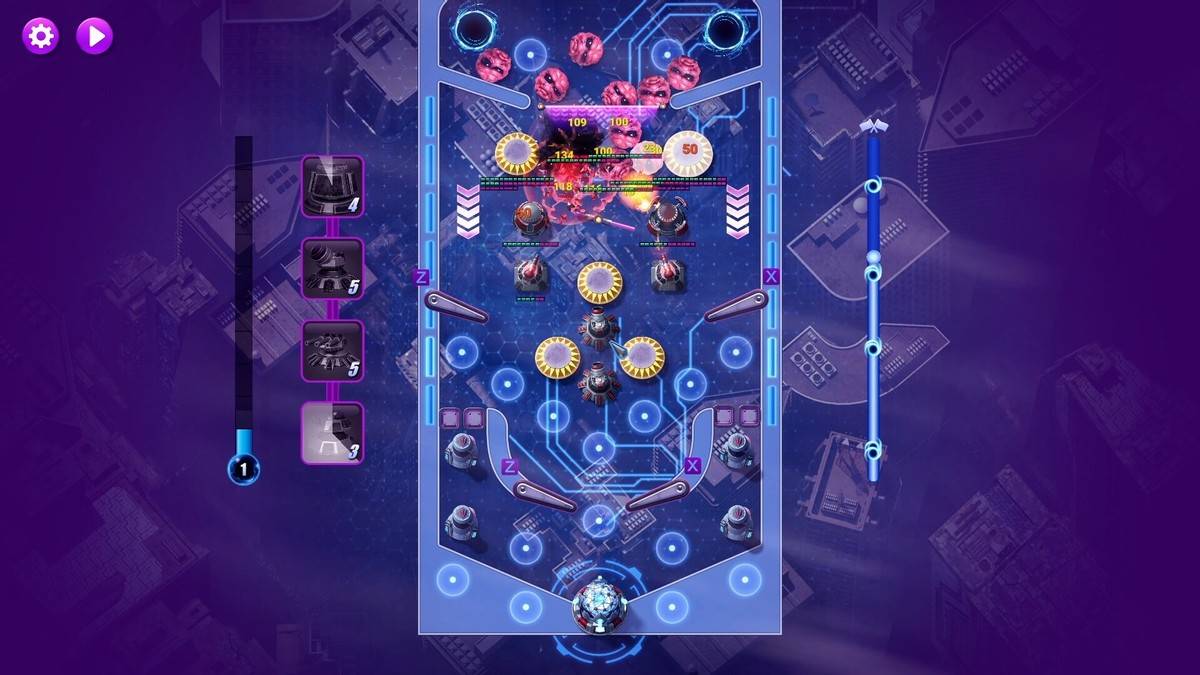 试玩体验:最具突破性的亮点,便是融入了三维弹球的操控机制!用炮台、陷阱自定义专属桌台,通过调整战场角度、引导物理反弹,改变外星入侵者的前进路径。