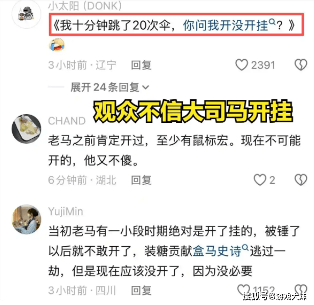 当然,也有人提到大司马过去“刻意掉分打低端局”的争议,以及有人吐槽大司马这个技术如果还有开挂的话,真的太离谱了,若真存在频繁出入低段位、数据波动剧烈的情况,确实可能增加风控风险,但这与“开挂”是两回事,纵观整场直播回放,并无逆天锁头或透视式操作,更没有常见的异常走位,实锤证据并不存在。