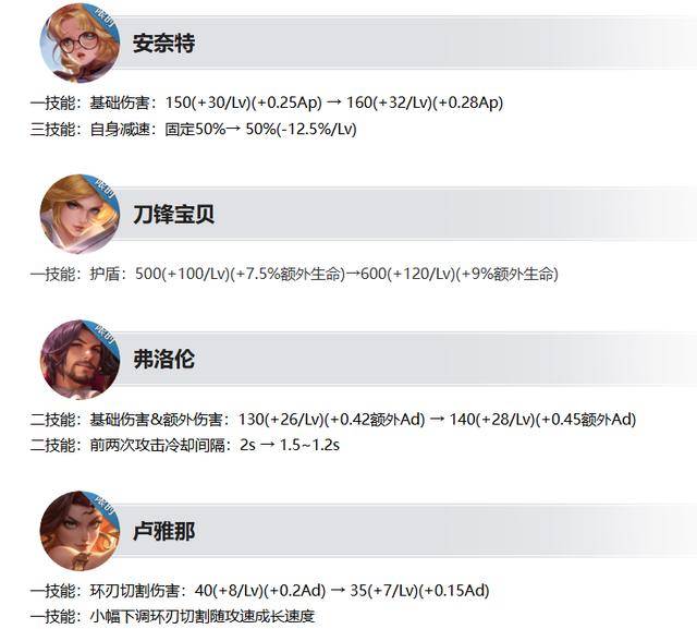 安奈特加强:1技能的伤害增加,3技能的自身减速降低。