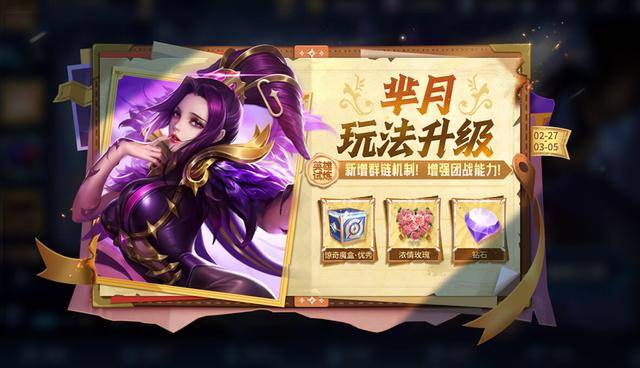 王者荣耀正式服将在2月27日上午8点开启不停机更新,这次更新的主要内容有:1、五位英雄调整;2、两件装备调整;3、全新皮肤上线;4、3月礼册开启;5、充值活动上线。具体内容如下: