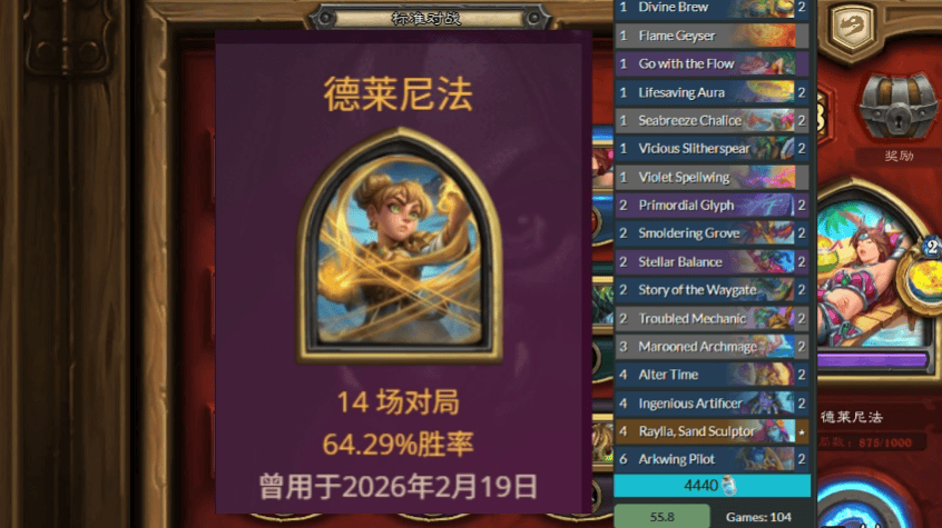 说实话,不少主播在第一次看到黑角时,已经预见到它被削弱的一天,而如今的效果改为只摧毁牌库里的卡,也算是“平衡”了一下。另外,之前受限于黑角的德莱尼法也正式迎来自己的全盛时期,而经过猫大改良后“飞机法”更是在高分段打出惊人的表现,以70%胜率从国服传说300打进100,实在是太强了。