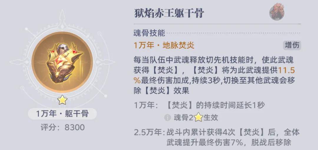 接着这波星神玉商店中还可以考虑兑换的便是价值500星神玉的昊天岭躯干骨自选了,其中可以选到的赤王和圣鹫这俩躯干,赤王肯定是优先没那么推荐的,其虽然有一定的保底增伤,但总体算下来高增伤的持续时间实在是太短了,泛用性极为不足。