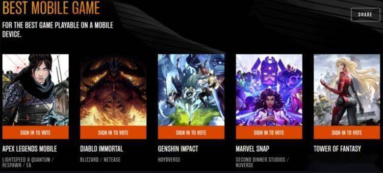对于《崩坏:星穹铁道》来说,今年可谓是大丰收的一年。先是上线后海外流水收入常年位于榜首,随后又在各类奖项中“大杀特杀”,先后斩获谷歌年度游戏和iPhone年度游戏两大奖项,让星铁玩家狠狠地扬眉吐气了一波。此次入围TGA年度移动游戏,更是让星铁玩家蠢蠢欲动,哪怕TGA玩家投票对奖项的影响微薄,也是个绝佳的安利时机,更是白嫖十连的好机会。