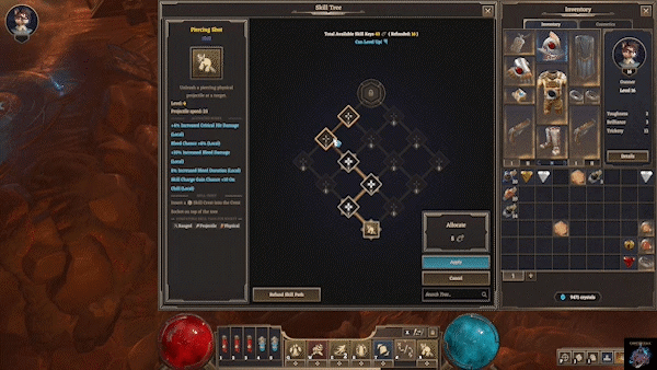 游戏构建了庞大且不断扩展的天赋树系统,伴随你从废墟走向巅峰。每一次升级都带来新的选择,与装备、技能形成层层叠叠的协同效应。更独特的是,技能本身也是可拾取的战利品——不同稀有度的技能散落在地城各处,配合程序生成的随机技能树,让你在每次探索中都能解锁全新的路径。插入技能纹章,调整节点方向,你的力量体系永远在进化,永远在突破。