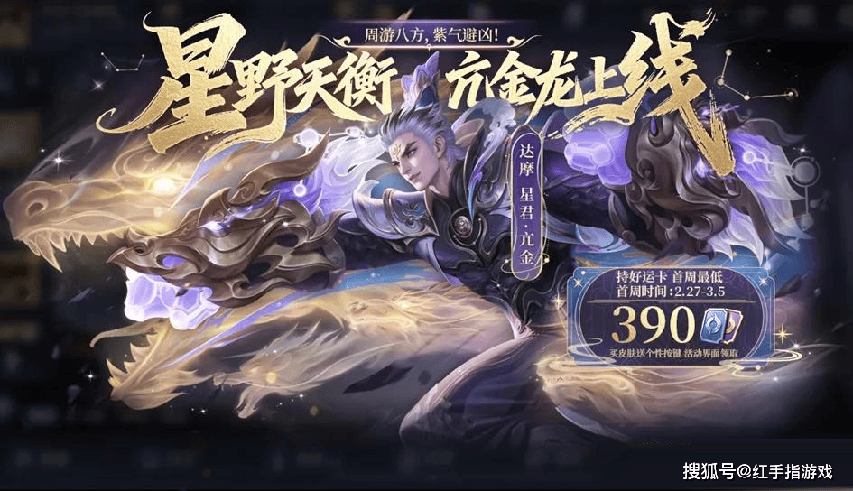这款皮肤以亢金星君为原型,双拳化作星辰龙拳,特效充满了金紫星光和龙形图腾,打击感非常炸裂。