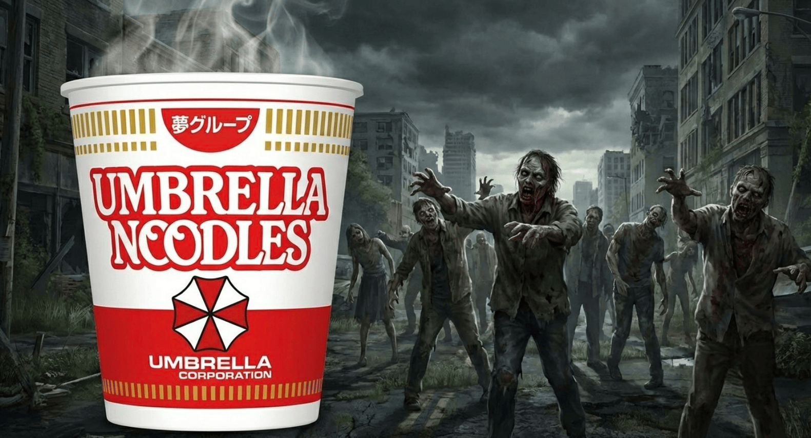 在背景设定中,安布雷拉公司成立于1968年,比现实中日清公司在1971年推出杯面产品要早三年。
