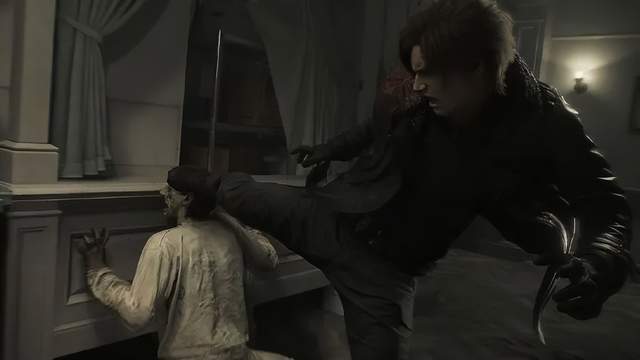 游戏给里昂的定位是系列中战斗力的巅峰状态。虽然他的嗓音比过去更沙哑,外形也步入了中年,但实际战斗能力很强。他的章节玩法基于《生化危机4重制版》的框架,动作反馈和打击感都延续了那种爽快感。