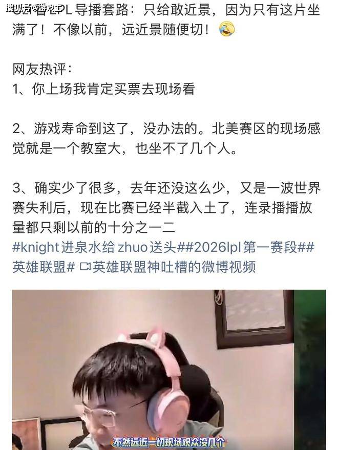 相信绝大多数的玩家对于lpl赛区还是比较熟悉的,作为曾经的世界顶级赛区,这几年里lpl的整体发展是非常迅猛的,战队数量越来越多,但整体的成绩却越来越差。连续几年没能拿到世界总决赛冠军之后,lpl也出现了很严重的赤字,多支战队陆续离开了比赛,整个的热度也是飞速下滑,甚至在上个赛季的时候,还把lpl打成了世界第四赛区。这个赛季,多名选手相继离开,导致lpl的热度直接陷入了谷底甚至连现场观众都没有几个了。