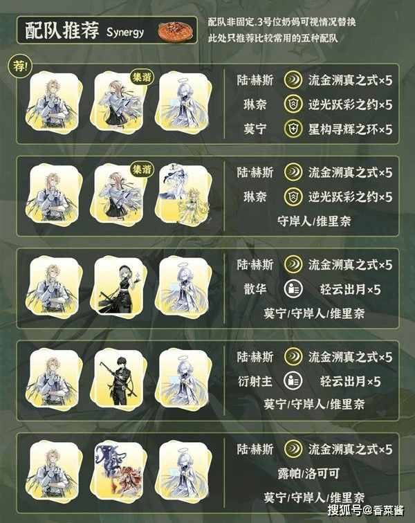 5、陆·赫斯是集谐普攻主C。最佳搭配是琳奈和莫宁,其中莫宁也可以换成其它奶妈。如果没有琳奈,可以考虑搭配散华/露帕/洛可可这种普攻加深副C。或者衍射主6链提供衍射减抗。配队比较亲民。