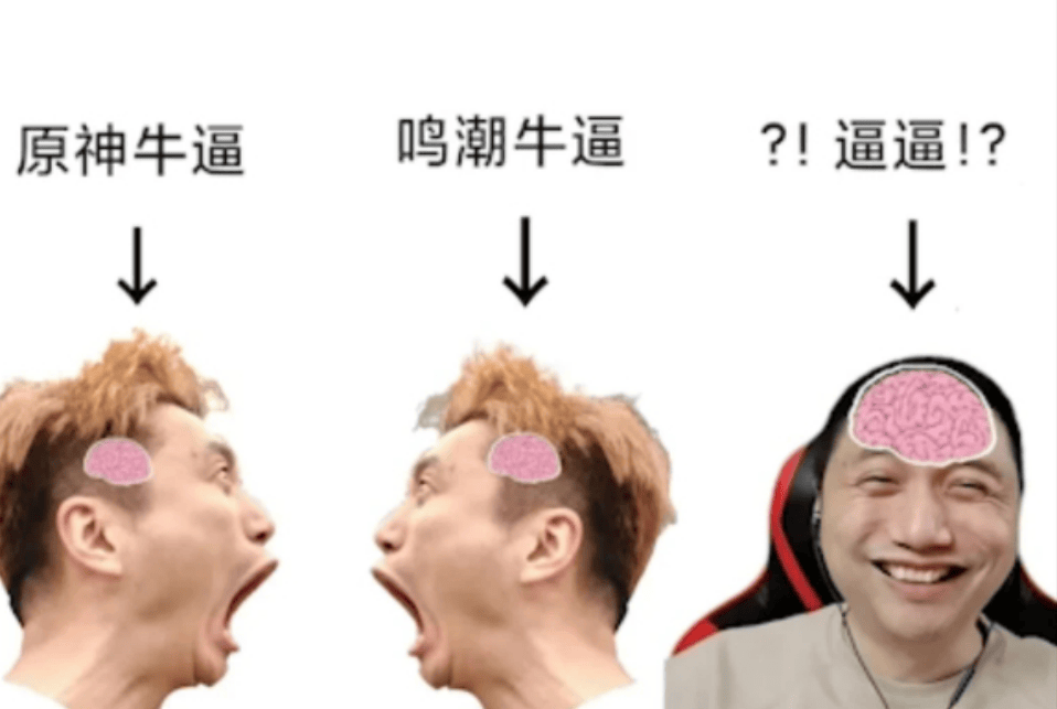 左侧和中间的小脑人类为原神牛逼还是鸣潮牛逼而愤怒对喷,右侧的大脑高人早已领先一步,率先使用小头思考,从正反双方的观点中各自断章取了跟下三路相关的关键词,凭借高超银商形成了自成一派的独立思考,已然超然物外,令人忍俊不禁。