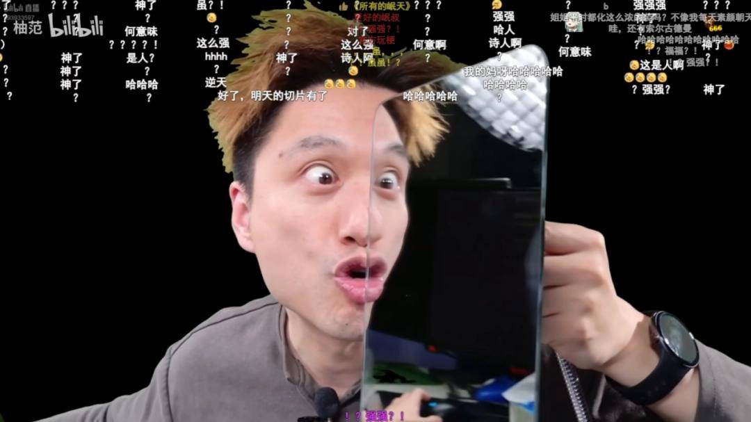 在某次直播中,为了“防止大伙再去P镜像图”,籽岷直接亲自上阵,拿了块镜子亲身Cos了一把“镜像岷图”——前面“猎奇区”的“花瓶姑娘”,就是用这张“真·镜像岷图”再次镜像后做成的。