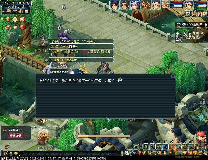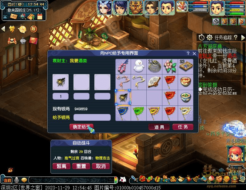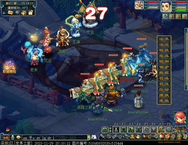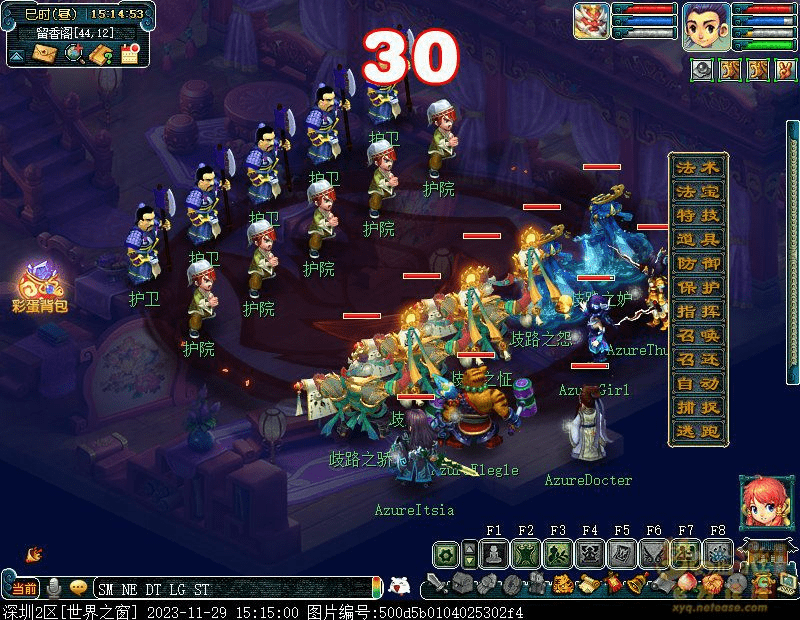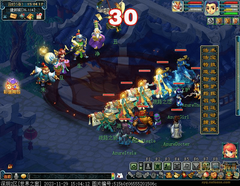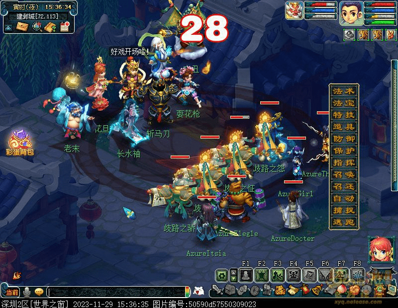 2.出发看戏,来到建邺城找戏班老板(建邺城72,113)观看新戏(需战斗)怪物从下到上依次为 神木、女儿、大唐、龙宫、大唐,伤害血量不高,可轻松通过。