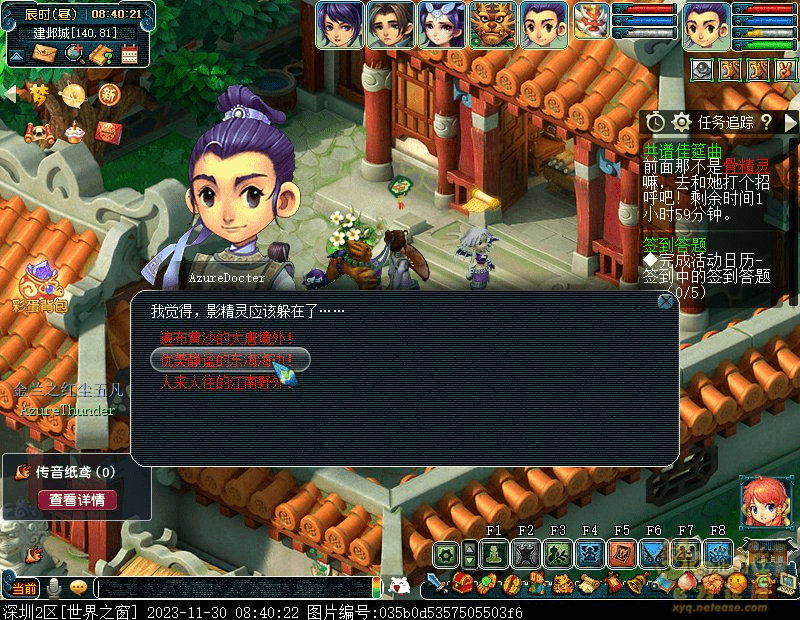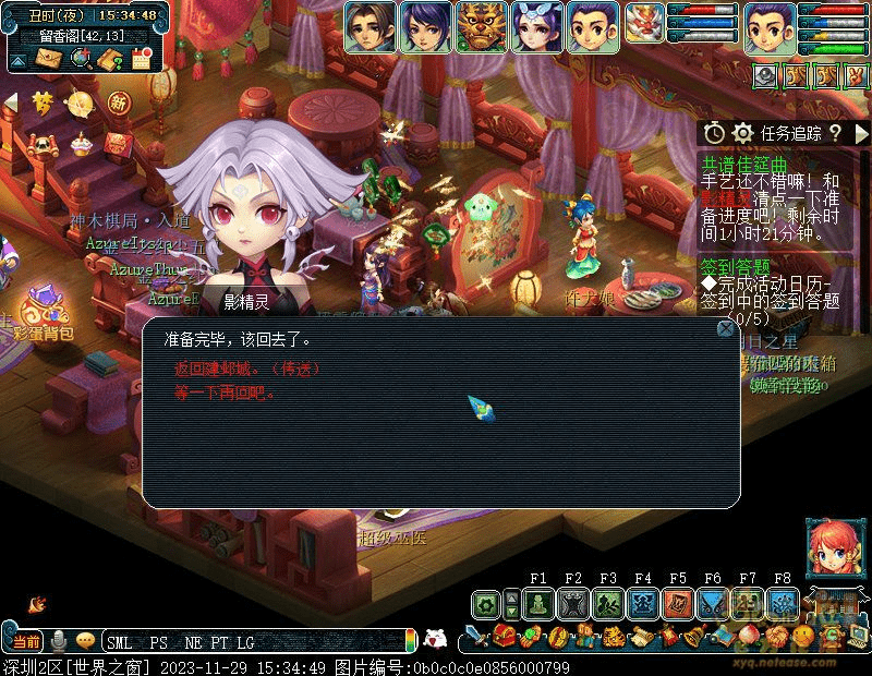 7.找影精灵(留香阁46,10)清点准备进度,返回建邺城交给吹牛王。