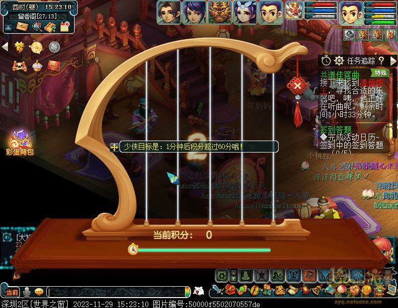 5.找清音坊主(留香阁21,16)寻找合适的乐器,需完成一个小游戏。