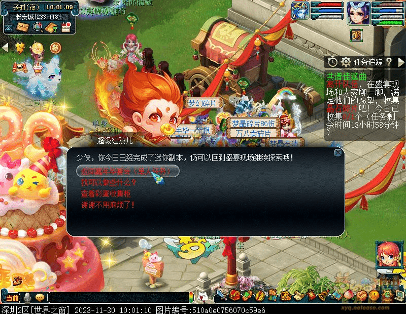 10.与影精灵(仙乐筵·夜83,15)对话结束小副本同时开启彩蛋任务:单人任务,在场景内与NPC聊聊可触发彩蛋任务。 (1)每日3次彩蛋任务,完成后可获得梦晶碎片,24:00未完成失效。
