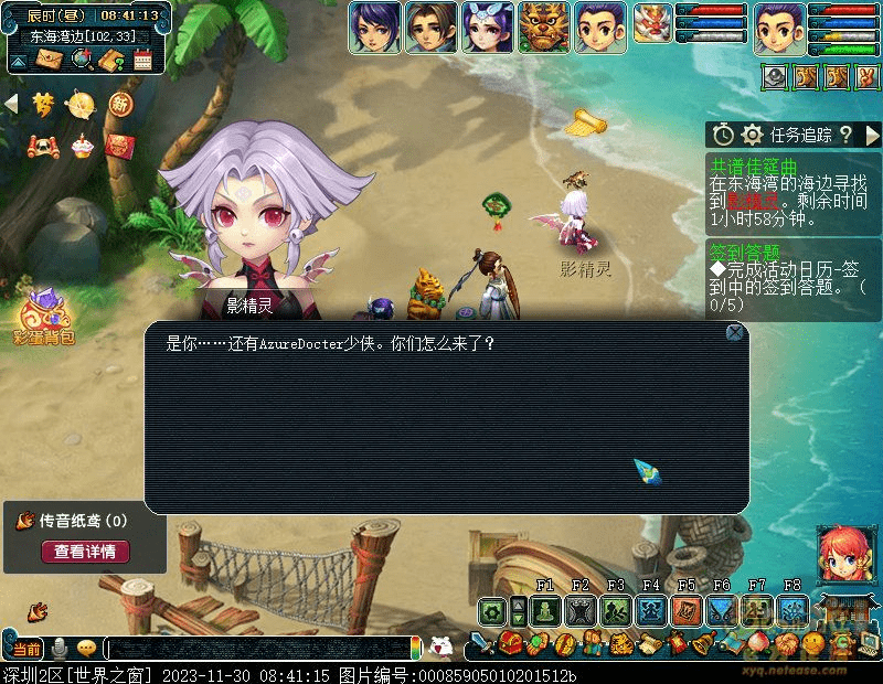 1.与骨精灵(建邺城144,81)打个招呼,选择东海海边,找到影精灵(东海海边106,37)对话。