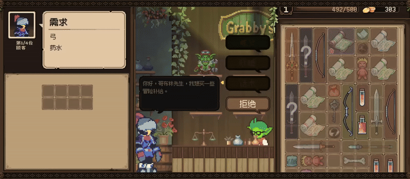 当黎明来临,维克则摇身一变,成为满口忽悠的奸商。白天的主要玩法是经营店铺,利用抬价与吹嘘话术让顾客心甘情愿地掏出金币。玩家必须揣摩顾客的心理,把握吹嘘的力度:成功时,你能赚得盆满钵满;一旦“吹爆”,顾客就会转身离去。经商并不是单纯的数值计算,而是一场心理博弈,让玩家在轻松又暗藏风险的氛围中,体验到诡诈交易的乐趣。
