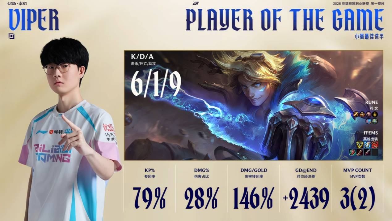 结果到了季后赛之后BLG直接暴揍全华班WBG,Viper也用自己出色的表现打穿了WBG下路,可见BLG的配置之强。