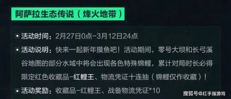 三角洲阿萨拉生态传说活动上线,全新大红收藏品-红鲤王限时收集开启!本期为大家带俩大坝长弓红鲤王点位,据说摸到红鲤王能带来一整年好运!