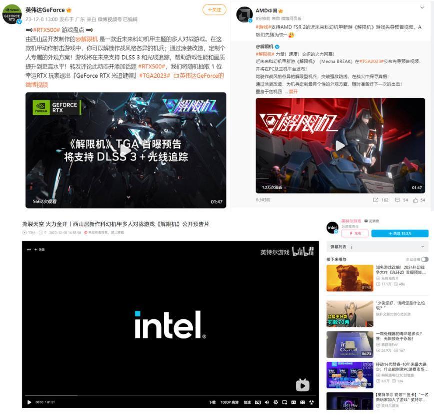 值得注意的是,《解限机》PV首曝之后,不仅国内外玩家纷纷表示期待,同时AMD、英特尔以及英伟达三家硬件巨头联合发文点赞,这是否代表着硬件厂商对于新作的认可?再加上能够在TGA的舞台上展示游戏核心玩法,这足以说明游戏质素已经达到了不错的水准。