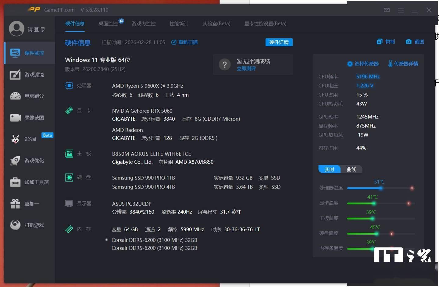 为了更加贴近主流玩家的硬件选择,IT之家这次以 AMD 锐龙 5 9600X 处理器搭配 RTX 5060 显卡为核心,力求给大家提供具有价值的性能参考。
