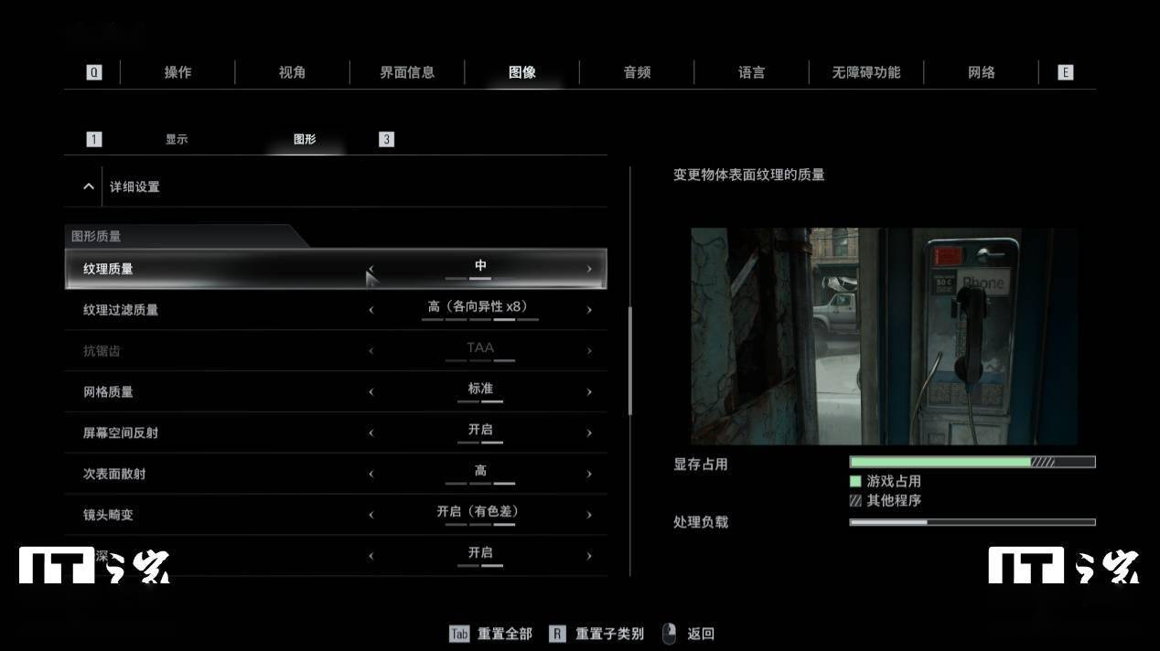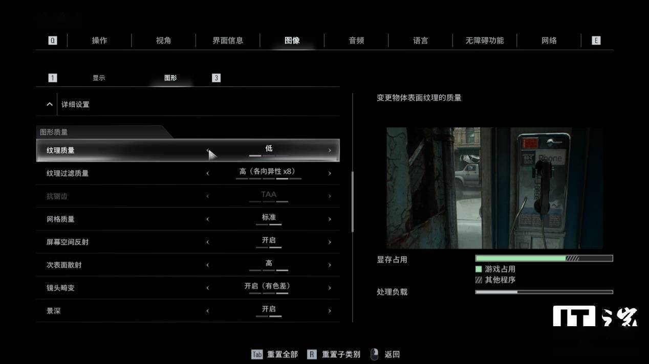 纹理质量预设低,显存占用提示