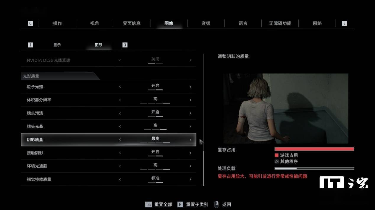 阴影质量预设最高,显存占用提示