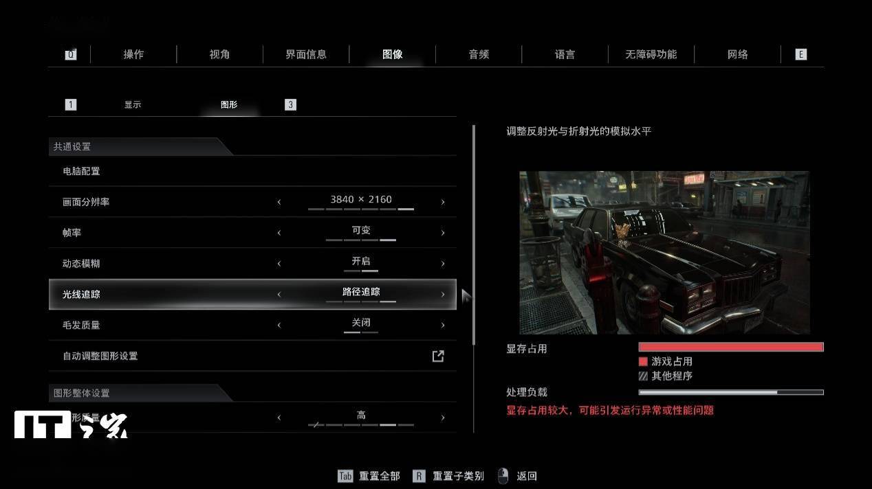 4K 分辨率 + 路径光线追踪,游戏显存占用提示