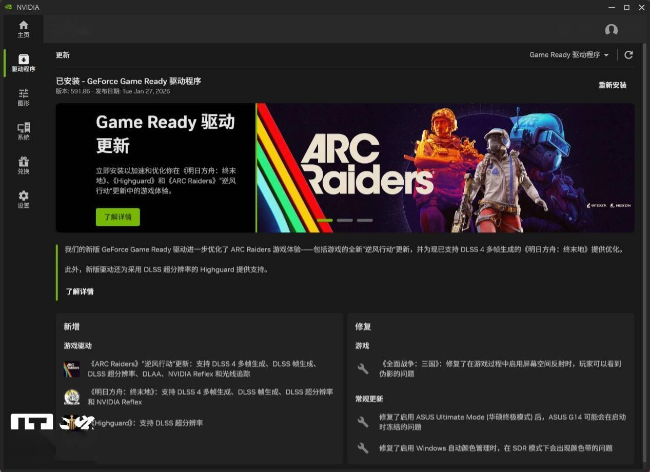 NVIDIA 驱动程序也更新到了 591.86 版本,遗憾的是该驱动暂未支持手动调节《生化危机:安魂曲》的驱动程序设置。