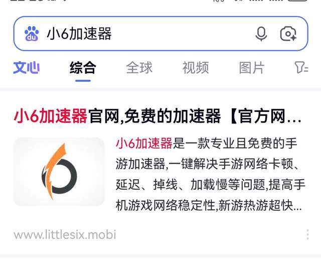 至于具体的使用方法也很简单,只需要我们通过手机浏览器搜索“小6加速器”。
