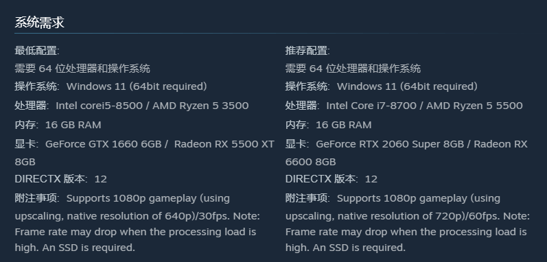 而这一点在CAPCOM官方公布的游戏配置需求中也有所体现,毕竟七年前的GeForce GTX 1660 显卡,在面对这款最新3A大作时尚有一战之力,而它的推荐配置,也只不过是GeForce RTX 2060 Super 8GB / Radeon RX 6600 8GB的水平,放在人手40系的当下,这种标准绝对足够亲民。