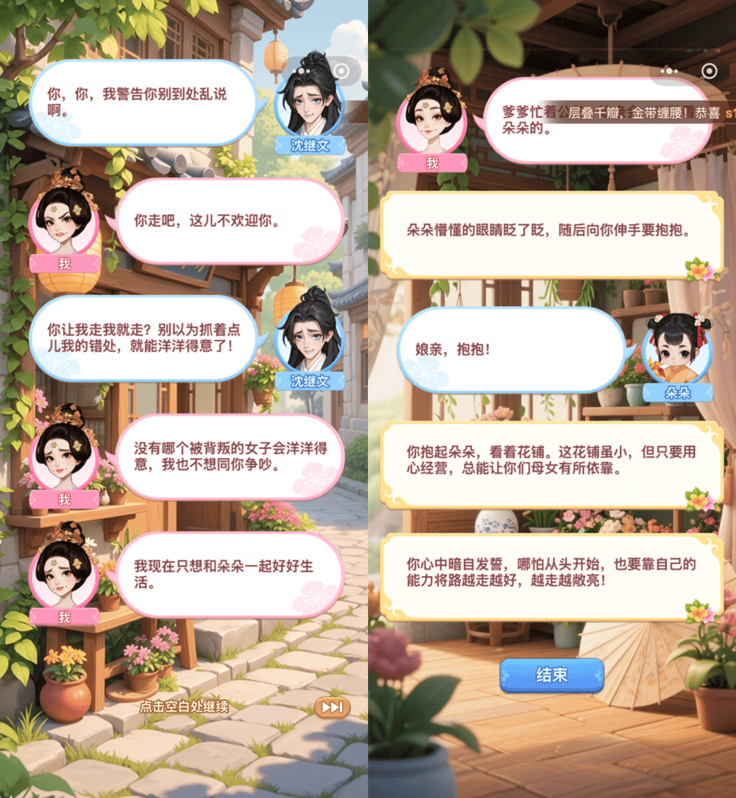 同时,游戏的整体剧情包装,也是爽文女主逆袭的戏码:女主发现丈夫出轨后,毅然和离,带着女儿独自开花店。