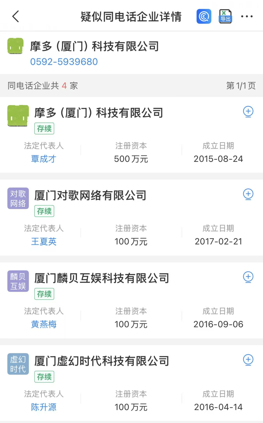 更深一层的联系是,企查查显示,摩多科技2020年提报的企业联系电话,与麟贝互娱疑似一致。且麟贝互娱的历史股东马兴巧的持股比例曾达到100%,而摩多科技有位股东名叫马兴森。