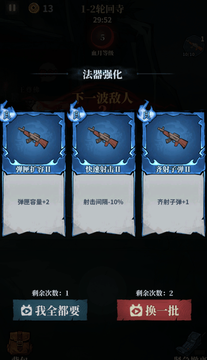 针对小游戏用户 碎片化、轻操作、强爽感的核心需求,《无限轮回》采用当前市场最成熟的 射击+肉鸽+搜打撤三重玩法组合,搭建起完整的爽感闭环。