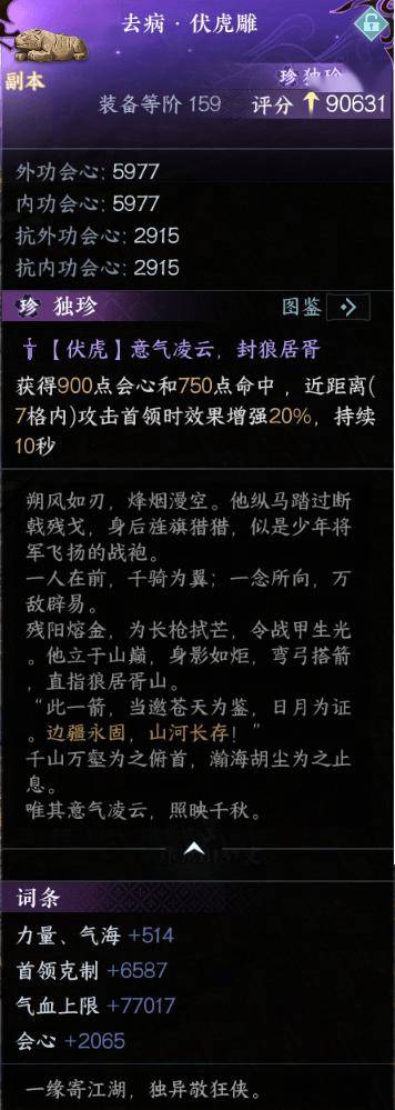 目渺云岳的升级版,保留了根据装备等阶之和提升属性的效果,首领克制变更为命中,配合盈虚化象的转化效果,泛用性更强,适用副本玩法。