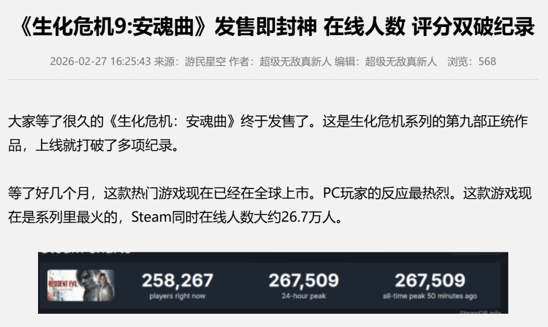 生 9 的 Steam 在线人数,也一度在工作日突破 26 万人,创造了整个系列的历史新记录。