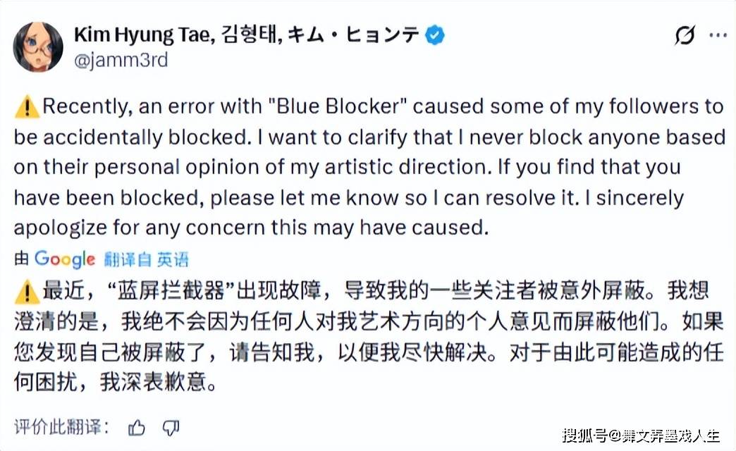 金亨泰还进一步表示,自己从未因任何人对自己移速方向的个人看法而拉黑别人。如果发现账号被自己拉黑,希望能够告知本人以便更好地解决问题。对于拉黑关注者账号可能引起的问题,金亨泰本人深表歉意。