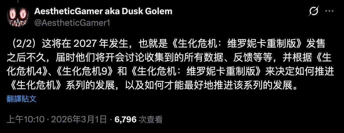 IT之家 3 月 1 日消息,消息人士 Dusk Golem 今天在 X 平台透露,卡普空将很快召开内部会议,评估《生化危机》系列游戏的用户反馈和数据。