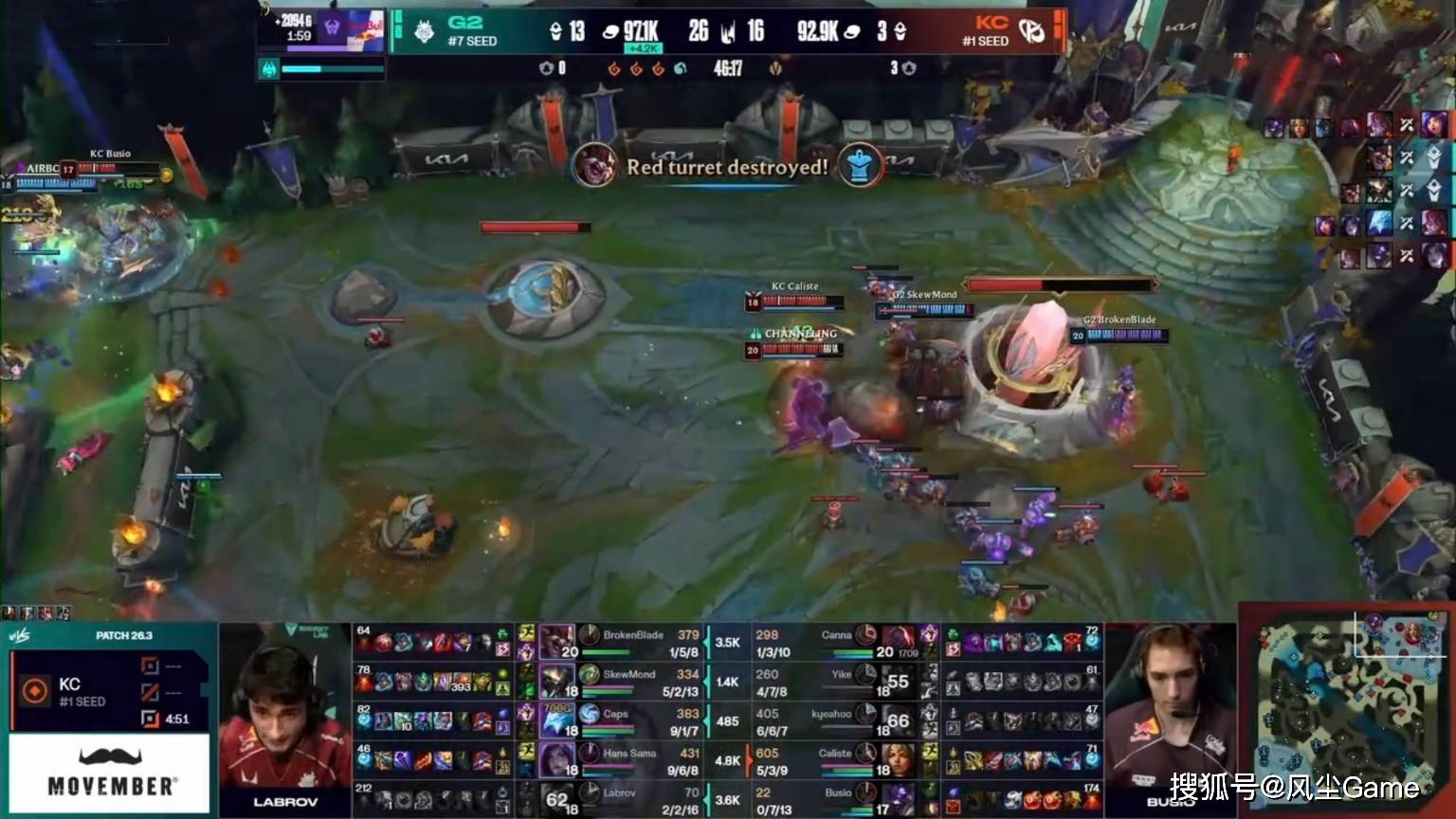 LEC赛区G2和KC争夺冠军,两队鏖战五局,最终G2赢下比赛,拿到冠军的同时,也晋级到了先锋赛,这两队的比赛,堪称“顶级小众变态比赛”,G2手握龙魂+远古龙+大龙,推平三路团战愣是打不过,KC眼看着要翻盘的时候,G2上野同时偷家,才得以终结比赛,两队都打得太过变态。