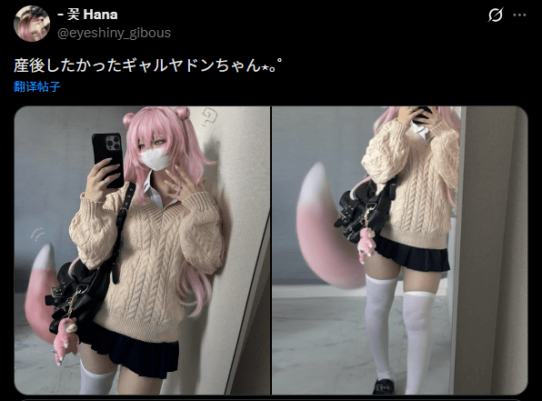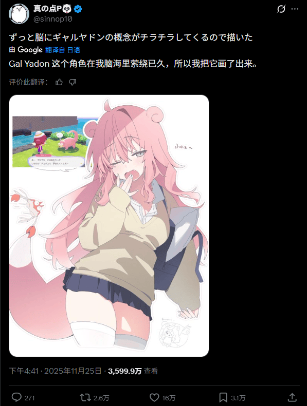 由于“真の点P”设计的这个造型在保留了呆呆兽圆形耳朵、大尾巴等视觉要素的同时还非常简洁、便于复制——很快,一批打着“辣妹呆呆兽”Tag的二创、同人插画、Cos等,就在Pixiv、X等平台涌现了出来,也让《Pokémon Pokopia》这款Switch 2单机作品在无意中体验了一把原先只有《碧蓝航线》《蔚蓝档案》等手游才会出现的“新角色一出就有铺天盖地二创”的盛况。