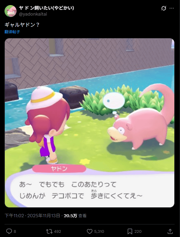 或许正是因为这种异于常人的小众爱好,才让他从整部《Pokémon Pokopia》宣传视频里只占了两秒的呆呆兽出场部分,发掘出了“辣妹呆呆兽”这个“学术创新点”。