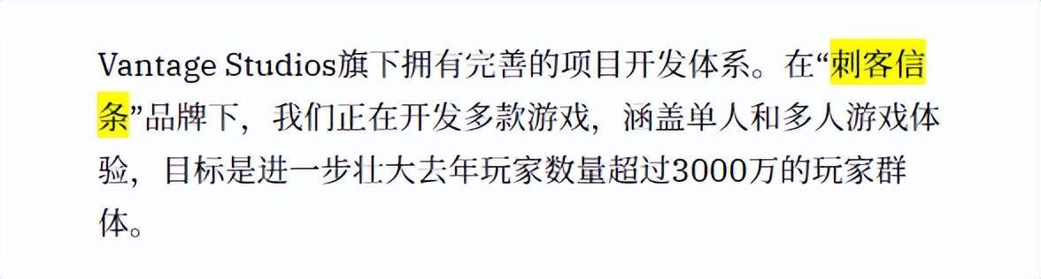 他透露育碧与腾讯合作设立了Vantage Studios工作室,未来该工作室将会围绕《刺客信条》IP开发多款产品,涵盖单人和多人玩法。