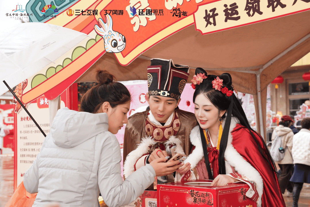 在今年春节的泉州,三七互娱就成为了一抹最不容忽视的亮色。春节期间,三七互娱与延趣游戏携旗下《寻道大千》《时光大爆炸》和《叫我大掌柜》三款热门游戏,与泉州文旅联合开展了一场题为簪花迎新,泉游好运的大型联动。