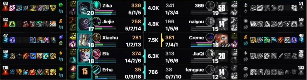 对比之下,本局Crème的小火龙是真的燃尽了,单局对位经济领先高达8000,单局分均输出超过2000,全场伤害71185,伤害转换率高达恐怖的350%,伤害占比53%,打破了多项个人数据纪录。