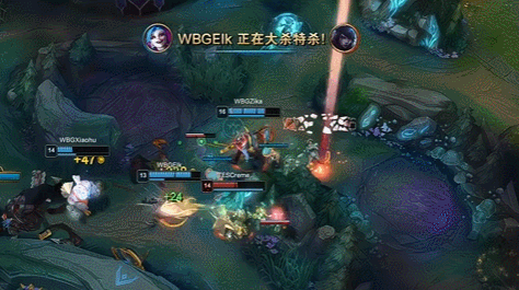 WBG是通过率先抓下路帮助Elk拿下一血,随后双方的下野辅交锋中,Jiaqi出现站位失误被Elk一波流砍下三杀,WBG前期巨大优势,接连进攻都取得成效。