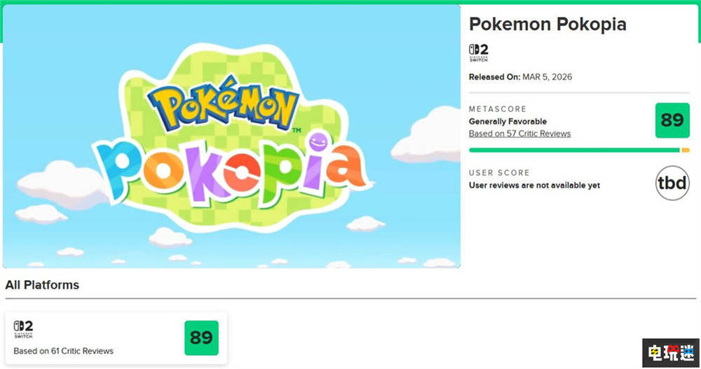 宝可梦衍生游戏《宝可梦Pokopia》媒体评分解禁,目前Metacritic的综分为89分(Switch2版,55家好评,2家中评),超越了包括《宝可梦Y》(88分)在内的所有宝可梦游戏。评价中大部分都对游戏的生活模拟玩法给出好评,这是《宝可梦》系列少有的体验。