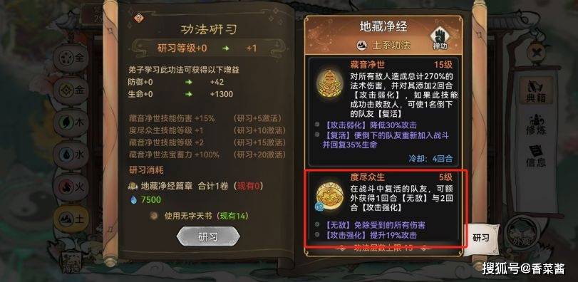 必白嫖功法:凤魂仙法(复活)、地藏净经(复活无敌)、山海梦间集(群体复活减伤抵抗)。