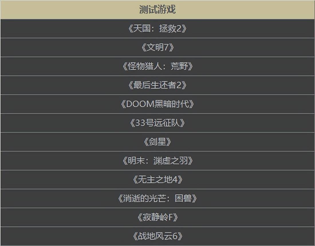 测试游戏选择了十二款2025年主流的游戏大作,按发布时间的先后顺序依次是《天国:拯救2》、《文明7》、《怪物猎人:荒野》、《最后生还者2》、《DOOM黑暗时代》、《光与影:33号远征队》、《剑星》、《明末:渊虚之羽》、《无主之地4》、《消逝的光芒:困兽》、《寂静岭F》与《战地风云6》,测试显卡采用微星GeForce RTX 5090 D SUPRIM OC 超龙,测试分辨率选择1920×1080(1080p)和2560*1440(2K),取平均FPS。