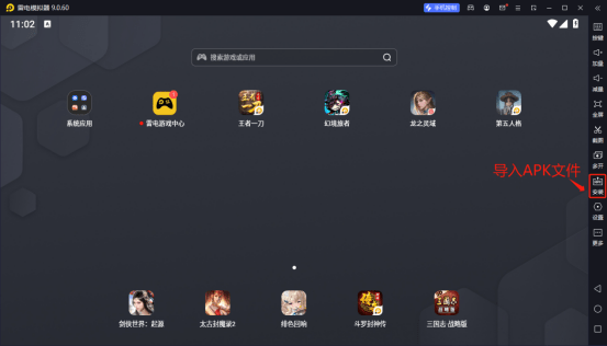 第二,是直接在模拟器右侧栏位中导入蛋仔派对电脑版的APK文件。