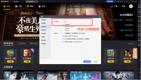 1. 帧率低是造成蛋仔派对电脑版卡顿的主要原因之一。点击模拟器首页右侧的设置,然后进入游戏设置-刷新率挡位中,可以根据电脑配置或个人需要选择120、144、165FPS,设置完参数记得保存哦!